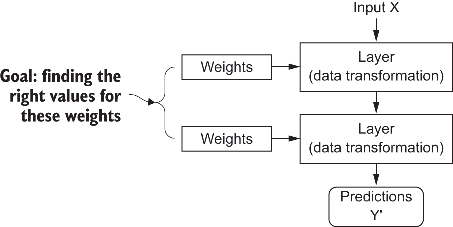 At this point, you know that machine learning is about mapping inputs (such as images) to targets (such as the label “cat”), which is done by observing many examples of inputs and targets. You also know that deep neural networks do this input-to-target mapping via a deep sequence of simple data transformations (layers) and that these data transformations are learned by exposure to examples. Now let’s look at how this learning happens, concretely.