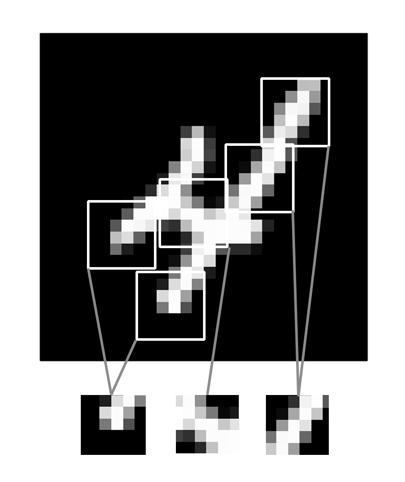 The fundamental difference between a densely connected layer and a convolution layer is this: Dense layers learn global patterns in their input feature space (for example, for a MNIST digit, patterns involving all pixels), whereas convolution layers learn local patterns (see figure 8.1): in the case of images, patterns found in small 2D windows of the inputs. In the previous example, these windows were all 3 × 3.