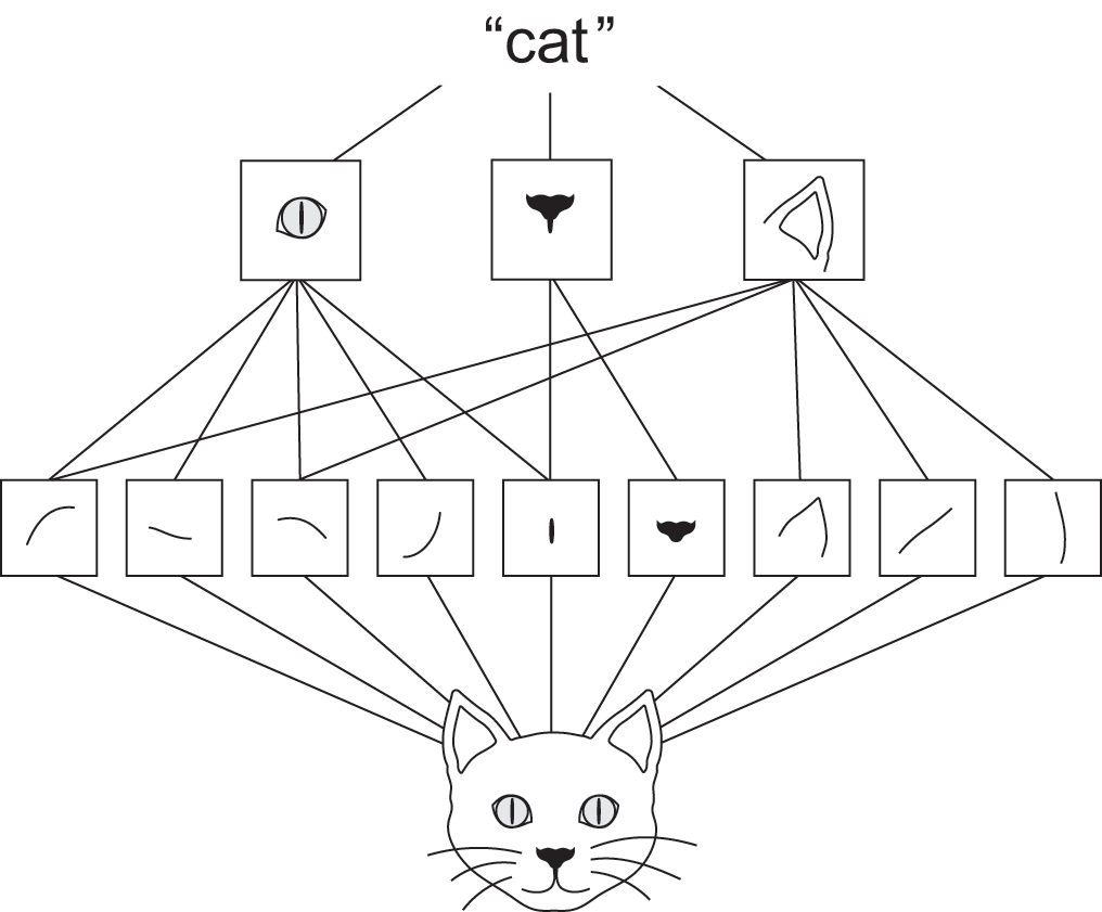 They can learn spatial hierarchies of patterns (see figure 8.2). A first convolution layer will learn small local patterns such as edges, a second convolution layer will learn larger patterns made of the features of the first layer, and so on. This allows convnets to efficiently learn increasingly complex and abstract visual concepts because the visual world is fundamentally spatially hierarchical.