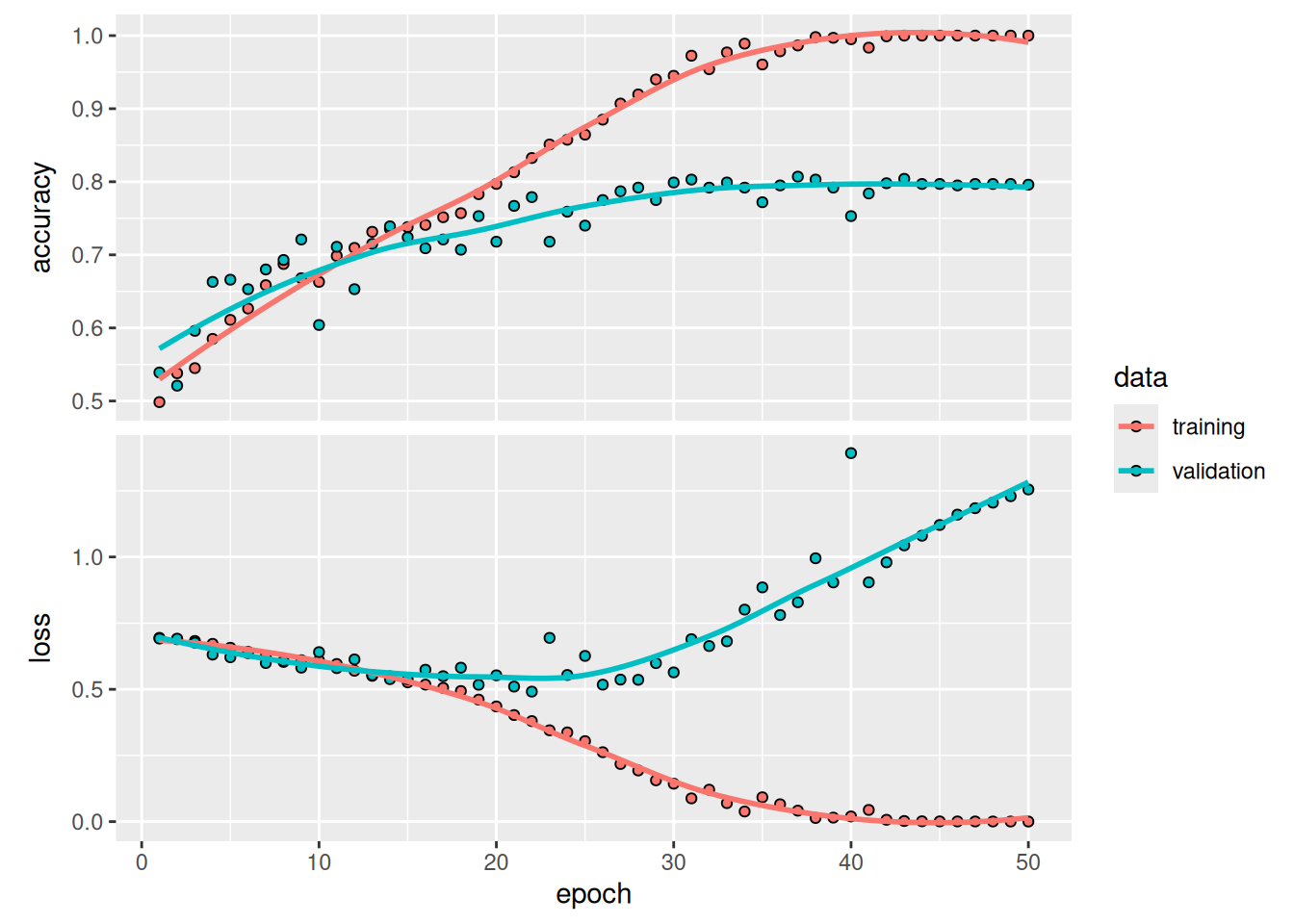 However, the plots also indicate that we’re overfitting almost from the start—despite using dropout with a fairly large rate. That’s because this technique doesn’t use data augmentation, which is essential for preventing overfitting with small image datasets.