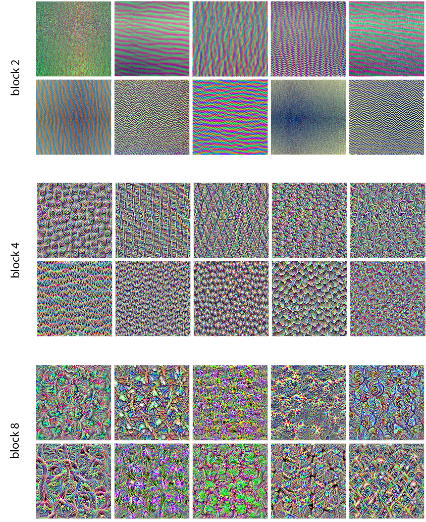 • Convnets process images by applying a set of learned filters. Filters from earlier layers detect edges and basic textures, and filters from later layers detect increasingly abstract concepts.