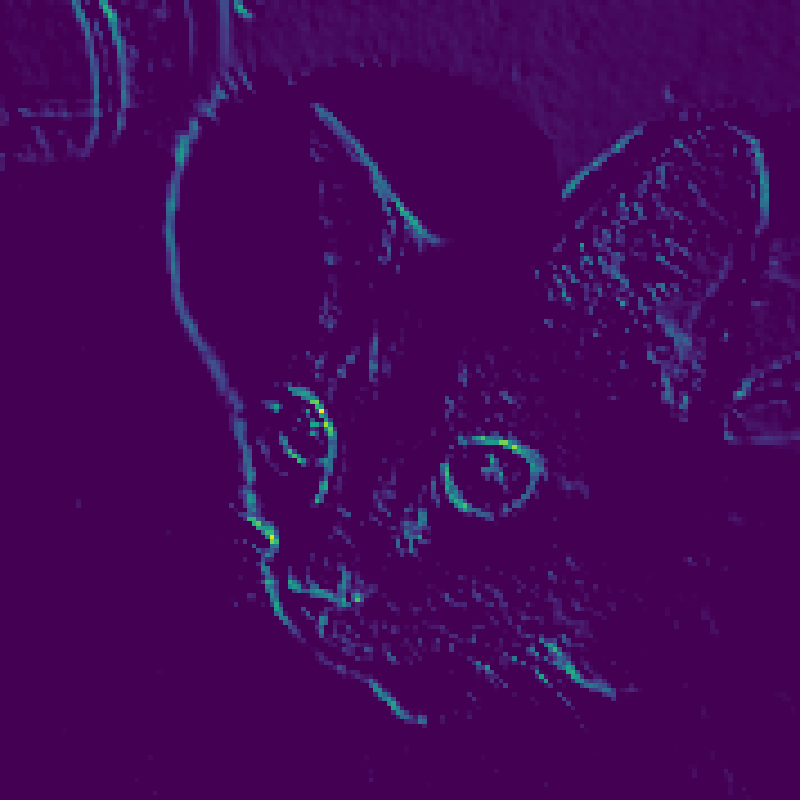 For instance, this is the activation of the first convolution layer for the cat image input: