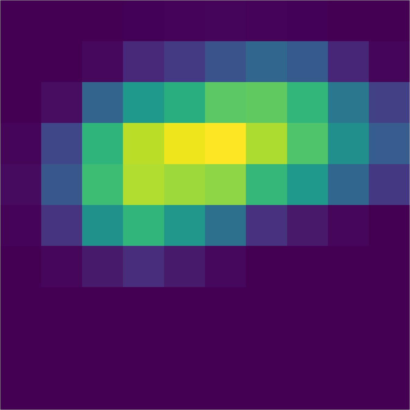 The channel-wise mean of the resulting feature map is our heatmap of class activation, with shape (10, 10).