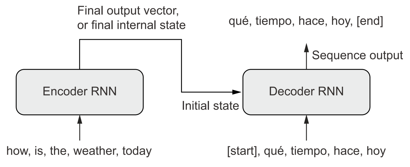 We don’t need to start from scratch; we can continue to use the idea of an integer sequence as a natural numeric representation for text. In chapter 14, we covered tokenizing a string, where we split inputs into tokens and map each token to an integer. We can detokenize a sequence by proceeding in reverse: map ints back to string tokens and join them together. With this approach, our problem becomes building a model that can predict an integer sequence of tokens.