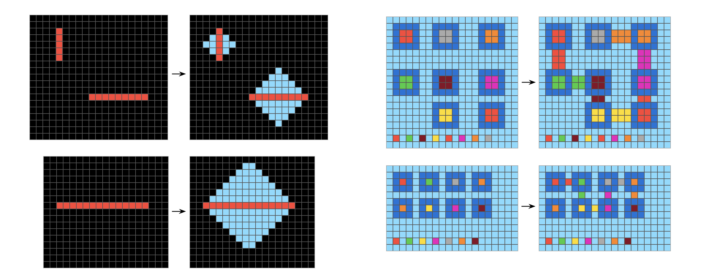 In 2018 and 2019, I (François) developed a benchmark dataset called the Abstraction & Reasoning Corpus for Artificial General Intelligence (ARC-AGI) (“On the Measure of Intelligence”) that seeks to capture this definition of intelligence. ARC-AGI is meant to be approachable by both machines and humans, and it looks very similar to human IQ tests, such as Raven’s Progressive Matrices. At test time, you see a series of “tasks.” Each task is explained via three or four “examples” that take the form of an input grid and a corresponding output grid (see figure 19.9). You’re then given a brand-new input grid, and you have three tries to produce the correct output grid before moving on to the next task.