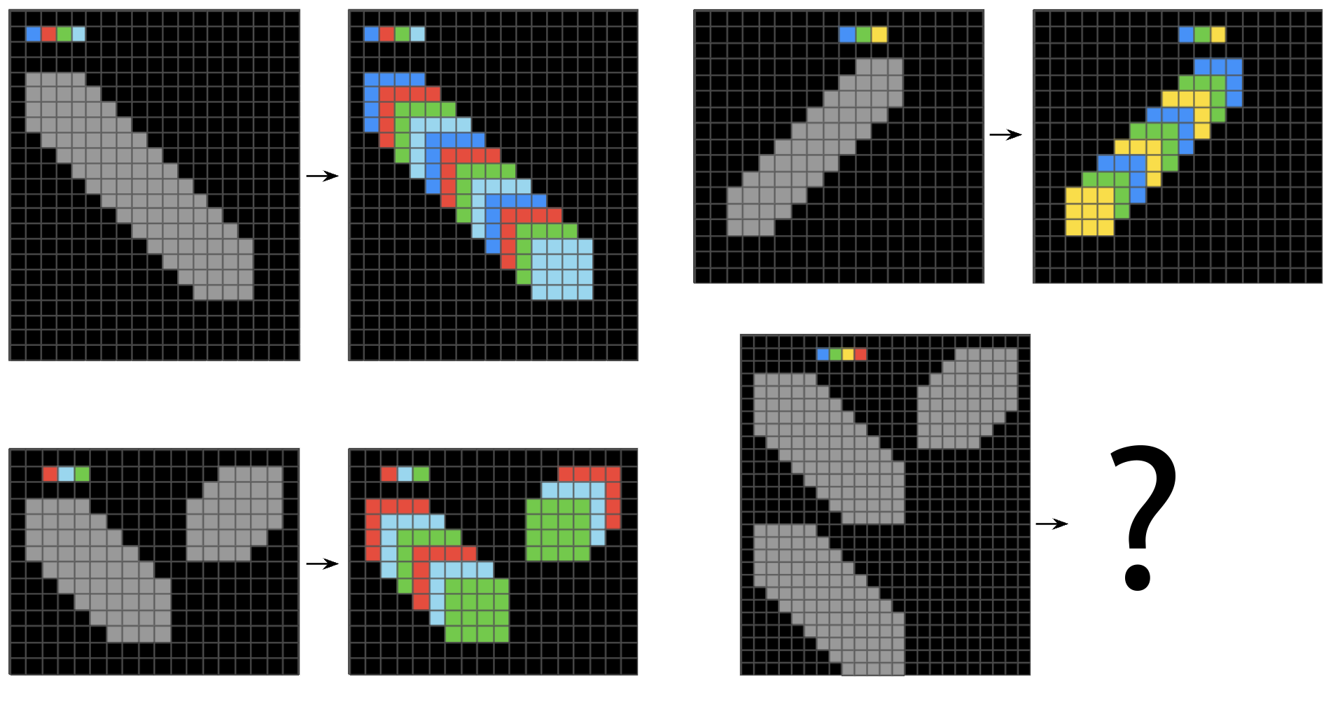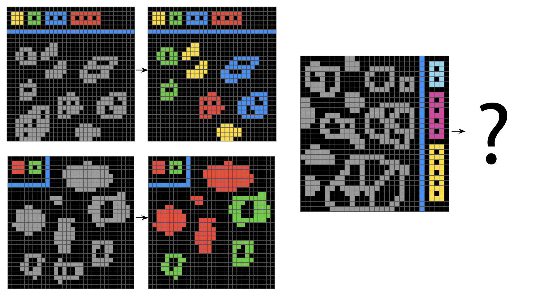 Take a look at the puzzle in figure 19.1. Did you figure out the solution? Good. It’s not very hard, is it? But today, no state-of-the-art LLM or vision-language model can do this because this particular problem doesn’t directly map to anything they’ve seen at training time—even after having been trained on the entire internet and then some. An LLM’s ability to solve a given problem has nothing to do with problem complexity, and everything to do with familiarity: they will break their teeth on any sufficiently novel problem, no matter how simple.