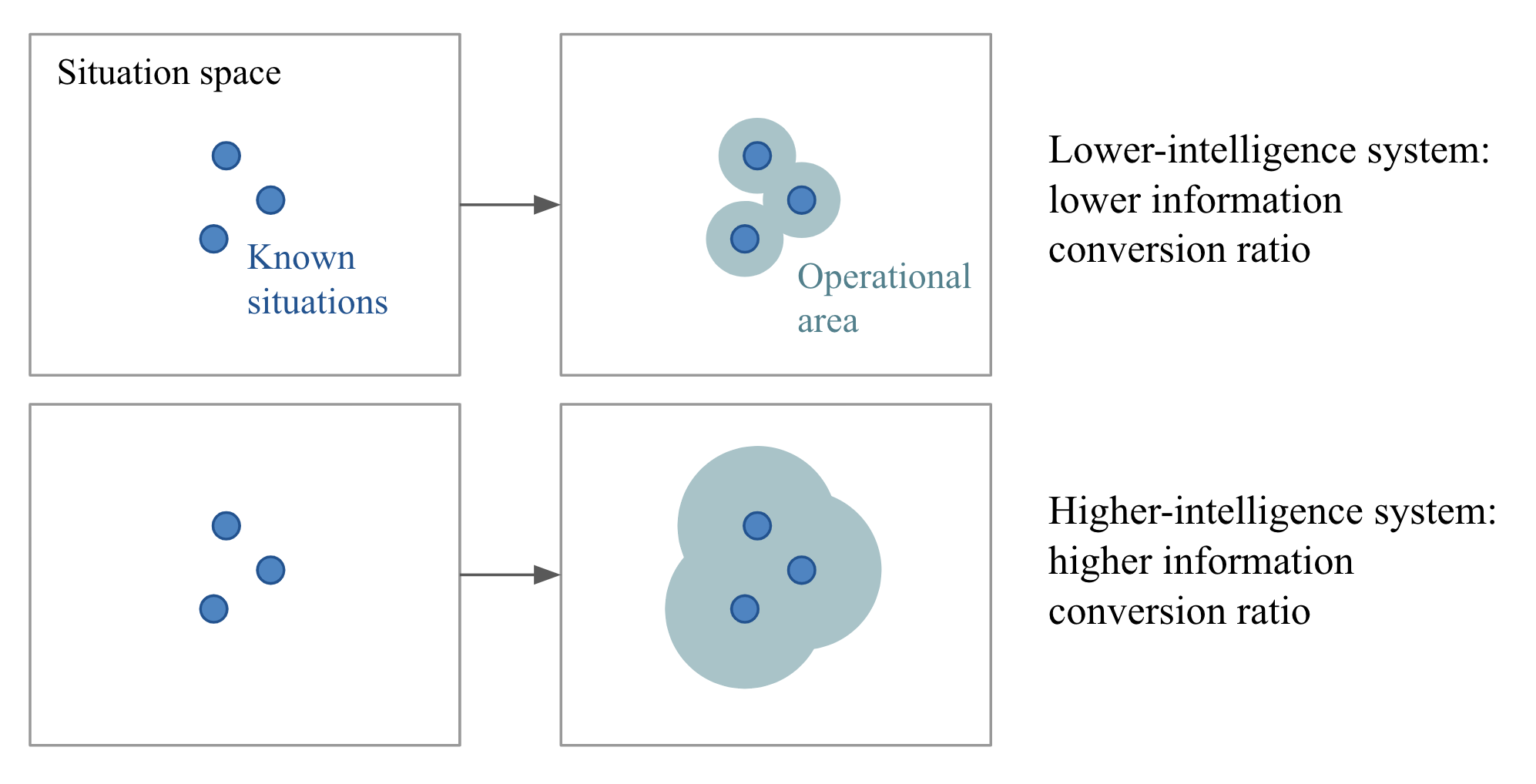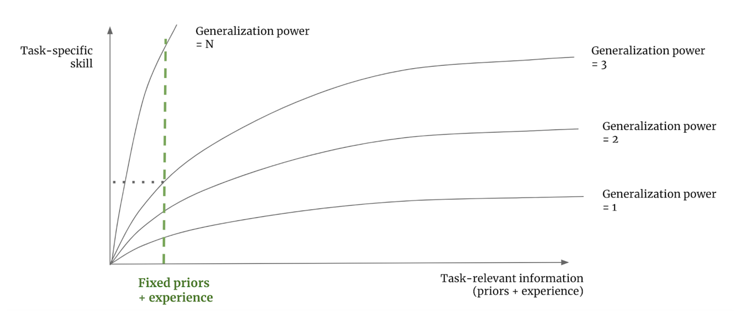 In our view, intelligence can be precisely quantified as an efficiency ratio: the conversion ratio between the amount of relevant information we have available about the world (which could be either past experience or innate prior knowledge) and our future operating area, the set of novel situations where we will be able to produce appropriate behavior (you can view this as your skillset). A more intelligent agent will be able to handle a broader set of future tasks and situations using a smaller amount of past experience. To measure such a ratio, we just need to fix the information available to our system—its experience and its prior knowledge—and measure its performance on a set of reference situations or tasks that are known to be sufficiently different from what the system has had access to. Trying to maximize this ratio should lead us toward intelligence. Crucially, to avoid cheating, we need to be sure to test the system only on tasks it wasn’t programmed or trained to handle—in fact, we need tasks that the creators of the system could not have anticipated.